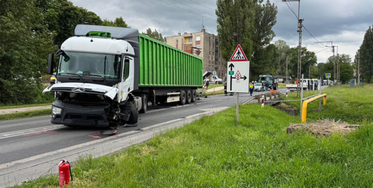 Május 19-én, hétfőn délelőtt összeütközött egy kamion és egy kisteherautó a 10-es számú főút nyergesújfalui szakaszán, az Óvoda utca közelében.