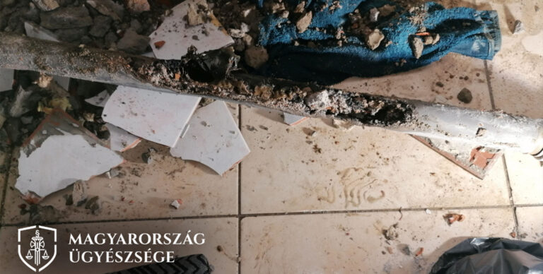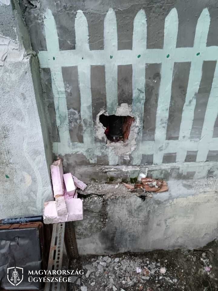 Fotók, forrás: Komárom-Esztergom Vármegyei Főügyészség (a fotókon a megbontott fal és a megrongált cső látható)