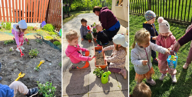 A Föld napja alkalmából virágültetést szerveztünk, ahol a gyermekek saját maguk ültettek virágokat a bölcsőde előkertjében, valamint virágládákba, mindeközben ismerkedtek az egynyári növényekkel, a színekkel.