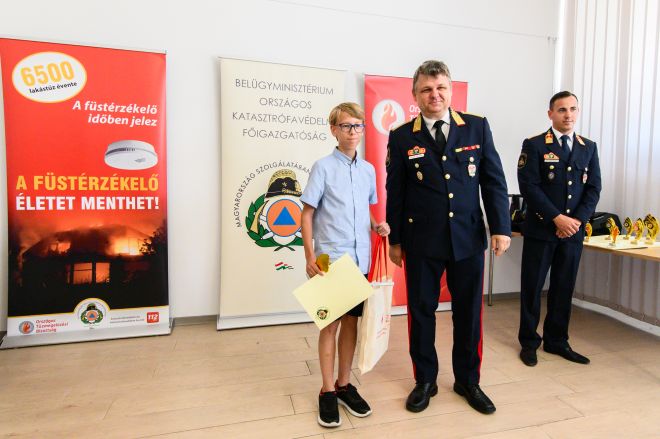 Fülep Zoltán tű. dandártábornok, országos tűzoltósági főfelügyelő a hétfői díjátadó ünnepségen gratulált a fiatal tehetségeknek, mint fogalmazott, valóban büszke lehet mindenki, akit díjaztak, mert messze nagyobb mezőnyből emelkedtek ki, idén ugyanis kétszer annyi pályamű érkezett, mint tavaly. A tábornok megköszönte a gyerekeknek azt, hogy gondolkoztak a tűzoltóságról, annak jövőjéről, a biztonságról és a tűzvédelemről.