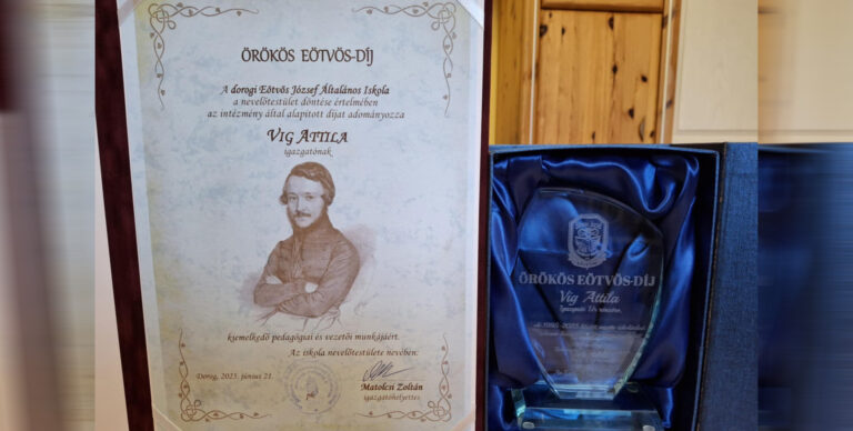 A Dorogi Magyar-Angol Két Tanítási Nyelvű és Sportiskolai Általános Iskola Eötvös József Tagiskolájának tanévzáró ünnepségén Matolcsi Zoltán igazgatóhelyettes búcsúztatta az iskola közössége nevében a nyáron nyugdíjba vonuló Vig Attila igazgatót. Ezen eseményen Vig Attila Örökös Eötvös-díjat kapott – közölte az intézmény a közösségi oldalán.