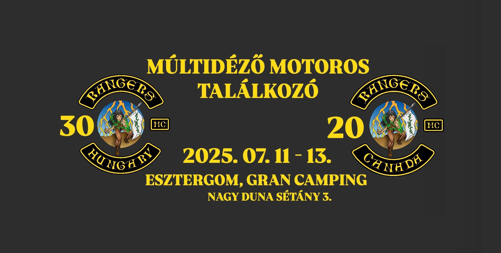 A Rangers M.C. Hungary motoros klub 1995-ben alakult, és azóta is egy folyamatosan működő, kitartó és összetartó motoros csapatként maradt talpon. A klub idén ünnepli fennállásának 30. évfordulóját, melynek keretében háromnapos – július 11. és 13. között – motoros találkozót szerveznek az esztergomi Gran Campingben.