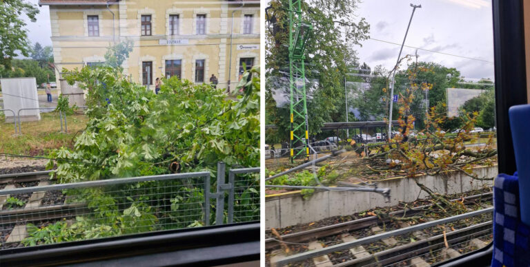 A hétfő délután átvonult vihar az ország több pontján jelentős károkat okozott a vasúti infrastruktúrában, melyet a MÁV munkatársai folyamatosan, az éjszakai órákban is megfeszített tempóban állítottak helyre. Az esztergomi vonalon rövidebb útvonalon közlekedő S76-os vonatokra lehetett számítani, Óbudáig közlekedtek és onnan fordultak vissza. A Z72-es vonatok megálltak minden állomáson és megállóhelyen Óbuda és Pilisvörösvár között. Fakidőlés miatt Solymár vasútállomáson csak a 2. vágány peronjánál álltak meg a vonatok mindkét irányban.