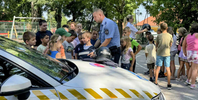 A Dorogi és az Esztergomi Rendőrkapitányság munkatársai közösen tartottak közlekedésbiztonsági előadást és eszközbemutatót a Dorogi Nyári Napközis Táborban, amelyen több, mint 80 kisiskolás gyermek és pedagógusaik vettek részt.