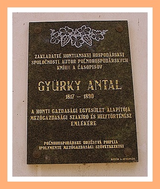 Emléktábla a szülőhelyén álló egykori Gyürky kúria falán (forrás: Emléktáblák, emlékhelyek tájainkon IV. – Felvidék.MA)