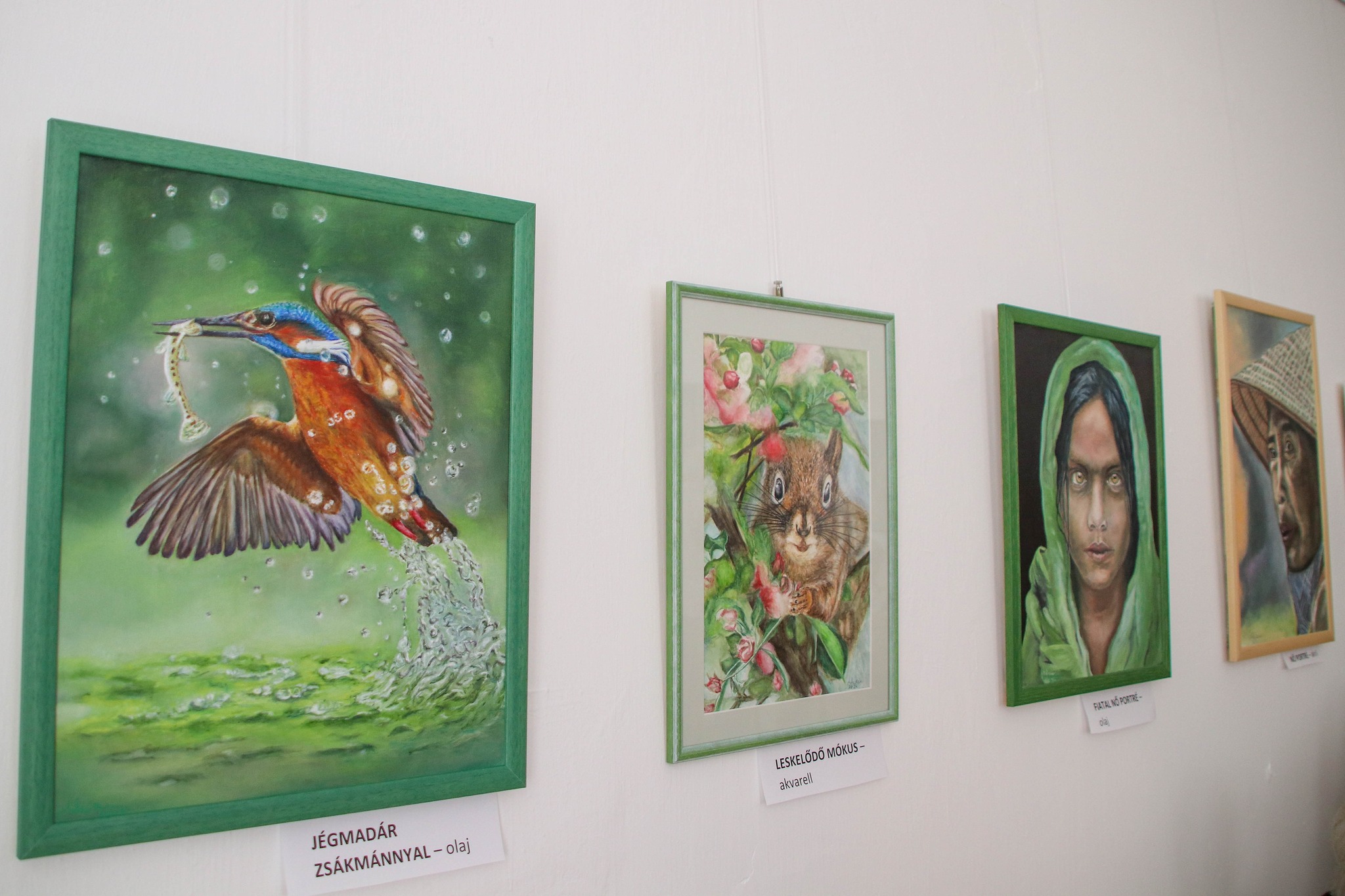 Ezután A. Bak Péter Hajnalné Ifjú Adrienne festményeiről mesélt hosszabban az érdeklődőknek, melyek között egyaránt láthattunk állati- és emberi portrékat, csendéletet, szakrális alkotást. De nem hiányozhatott a településünk jelképének számító Hegyeskőt ábrázoló festmény, valamint az alkotó édesanyjának emléket állító ceruzarajz sem.