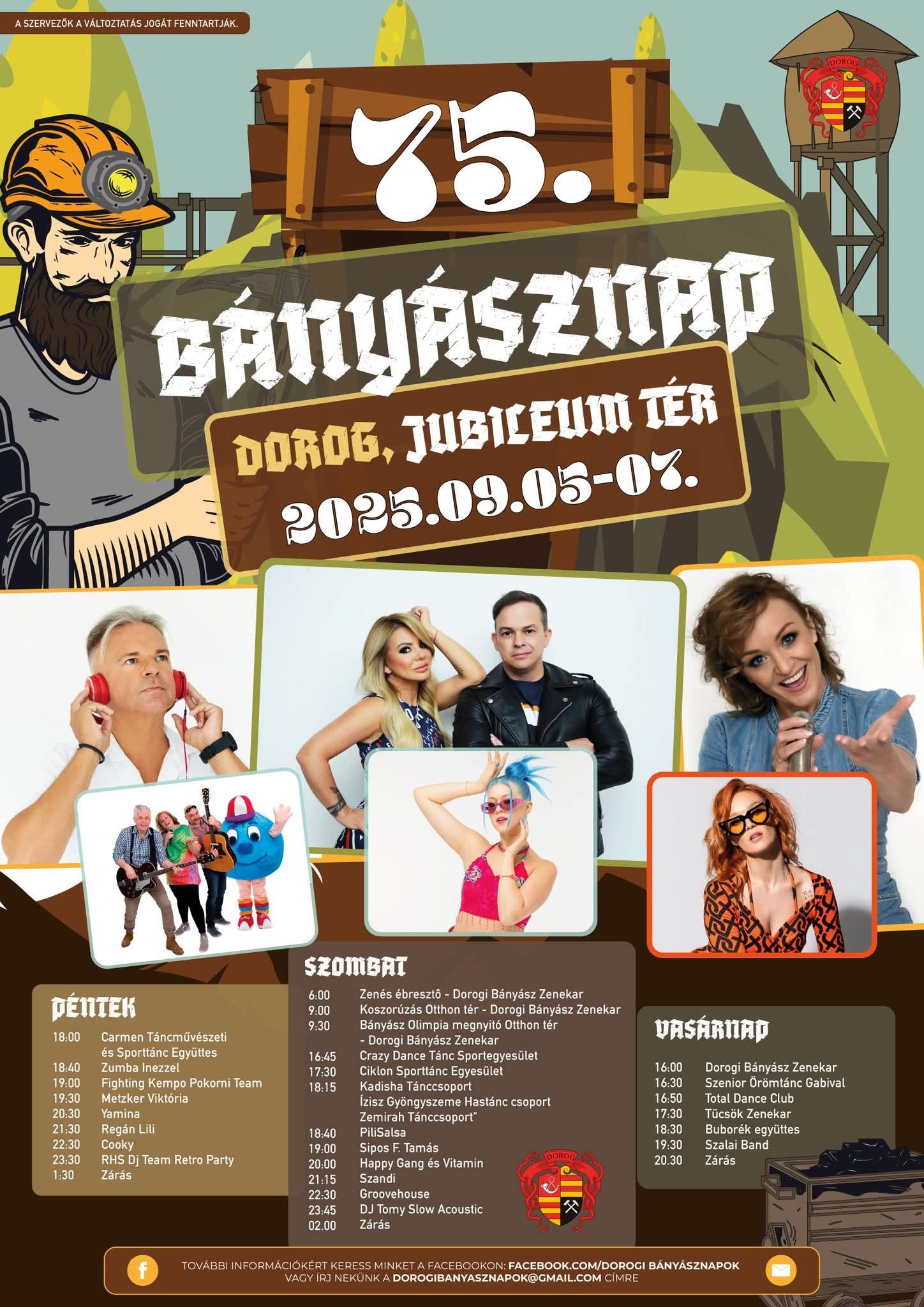 Szeptember 5. és 7. között 75. alkalommal rendezik meg a Dorogi Bányásznapokat a Jubileum téren. Idén is ismert lemezlovasokkal, koncertekkel, családi és gyermek programokkal, esténként pedig utcabállal várnak mindenkit!