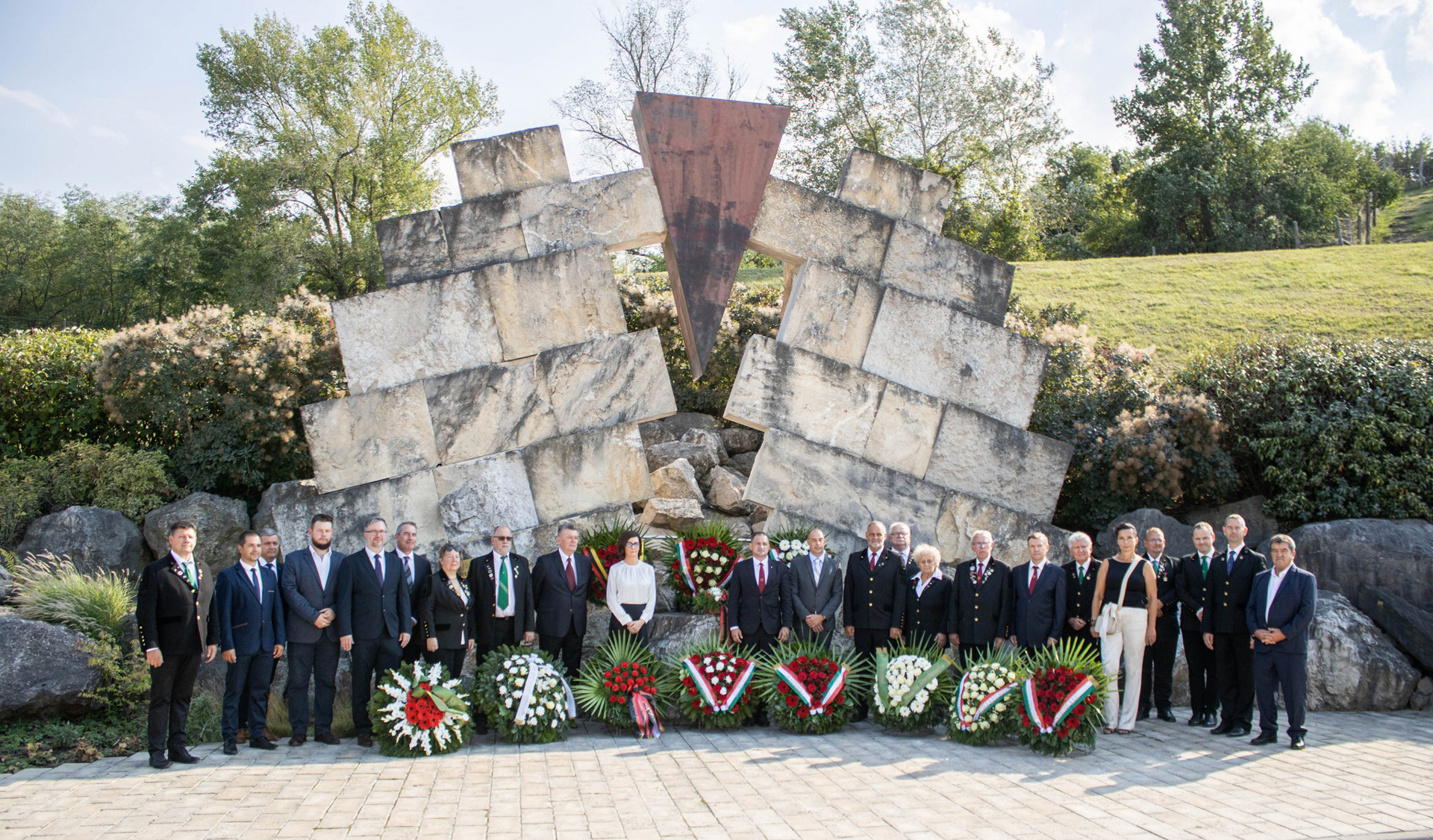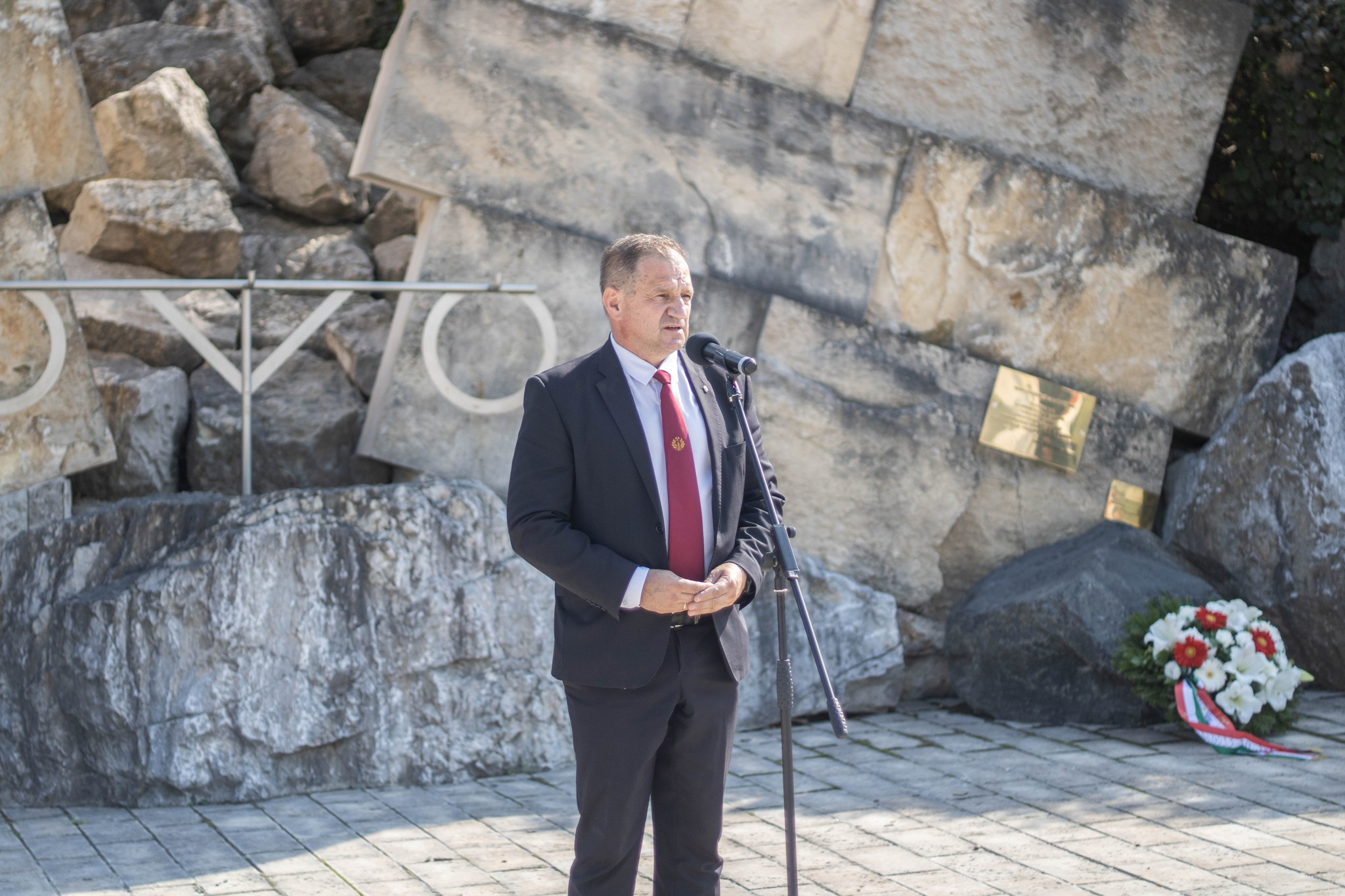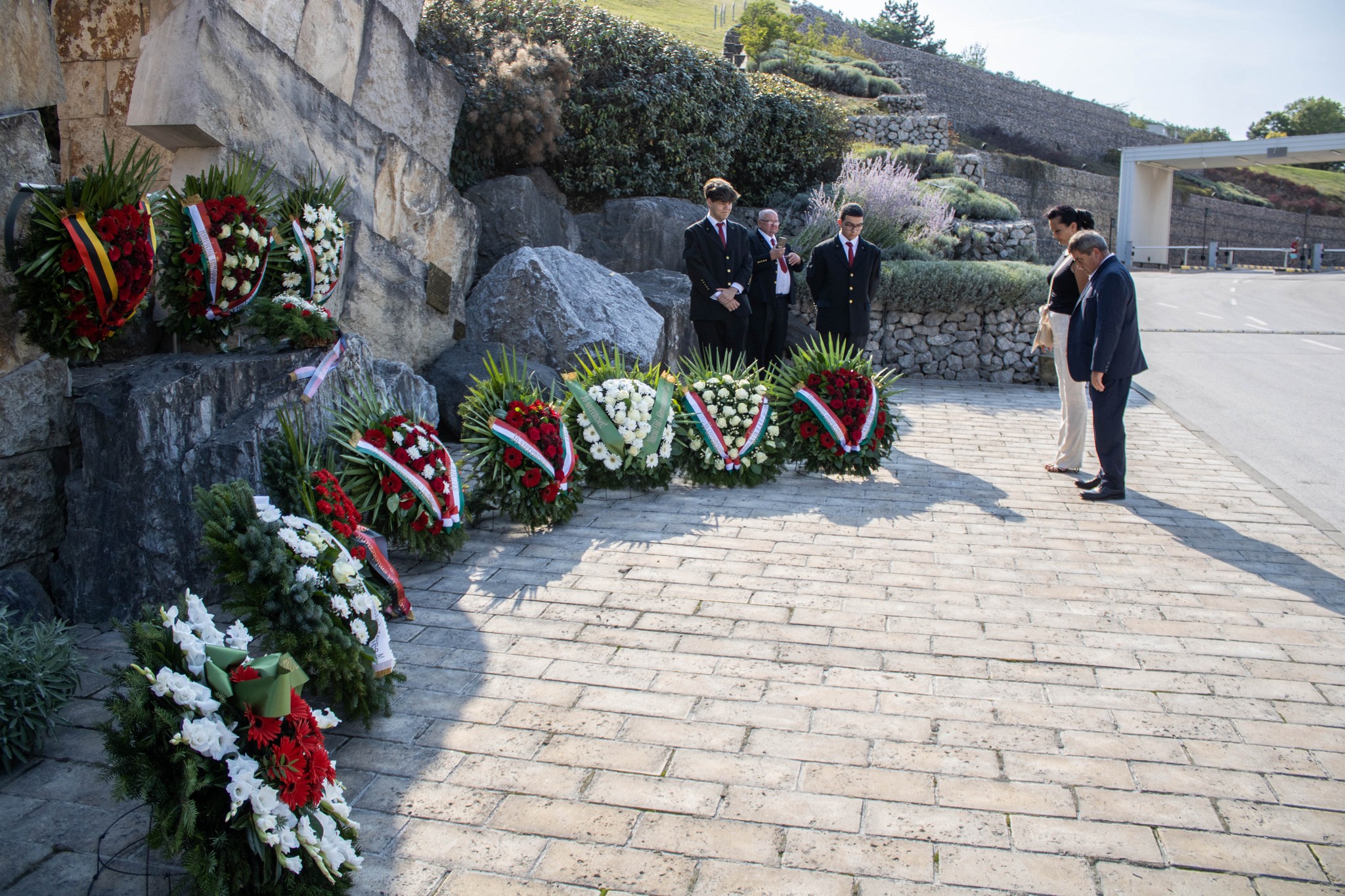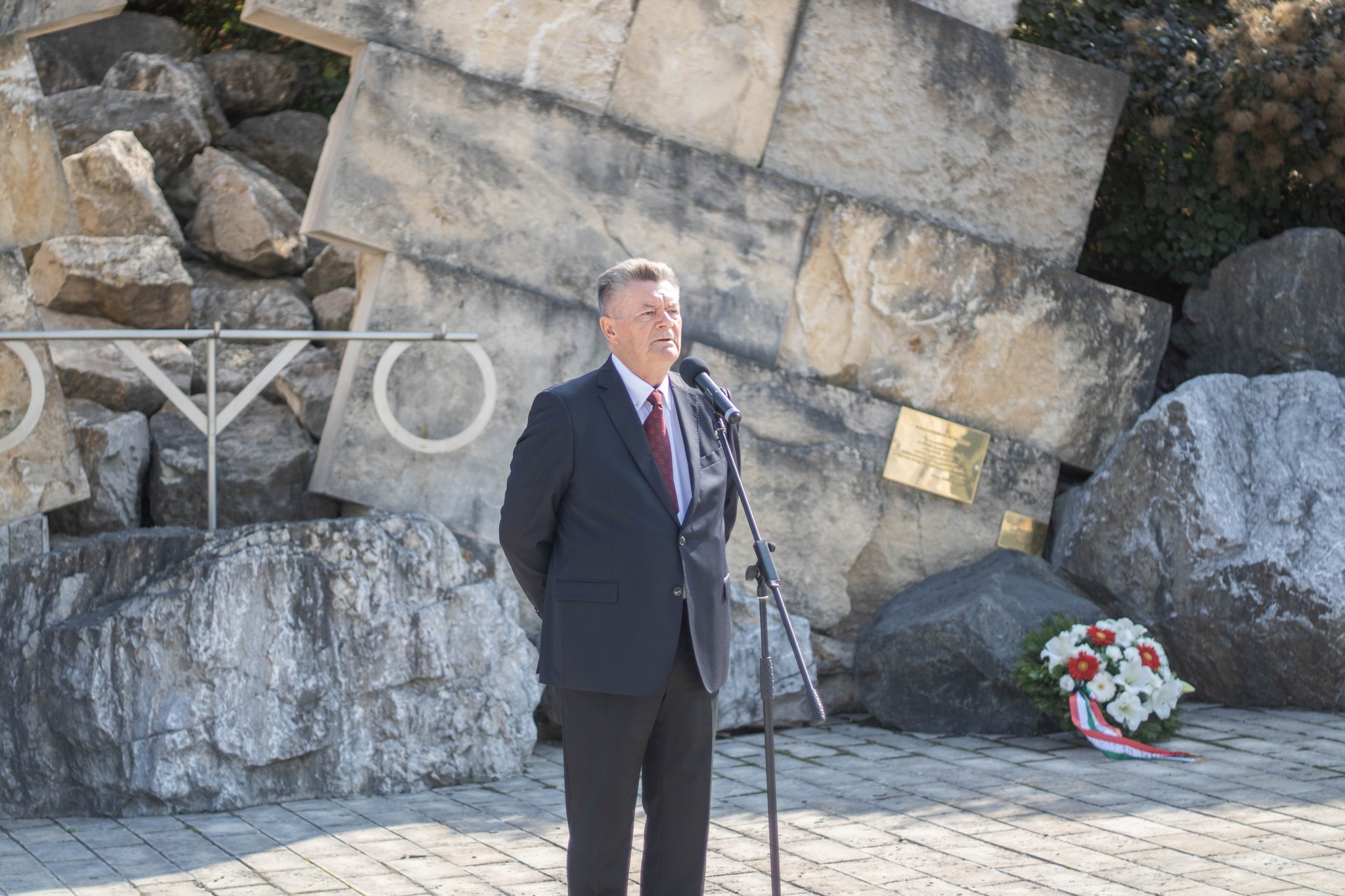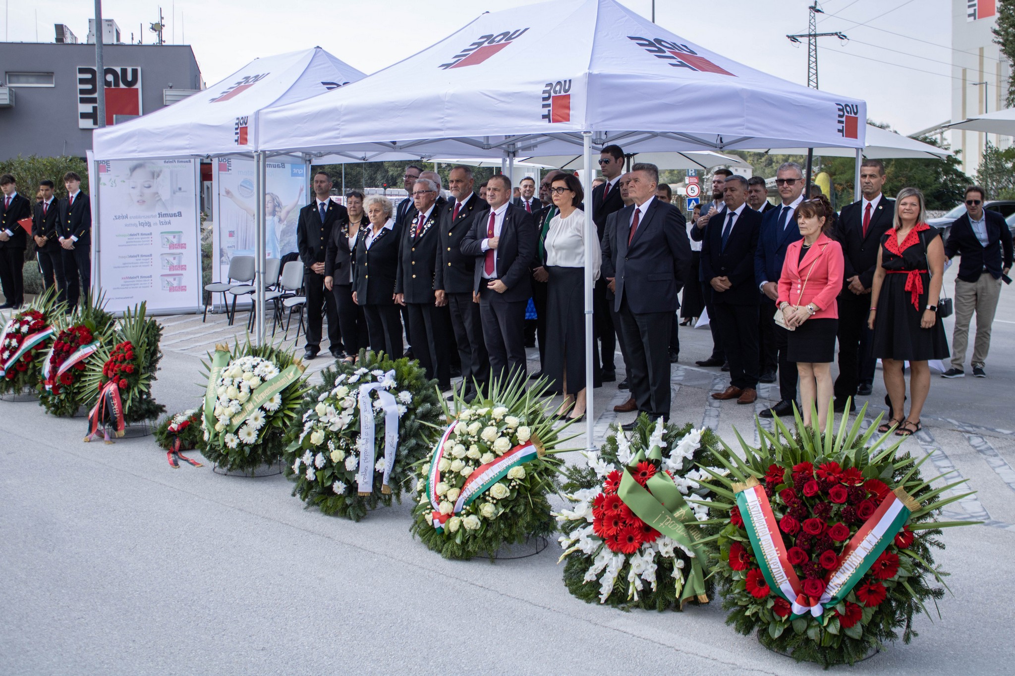 A Baumit Kft. nevében Járomi Judit ügyvezető igazgató és Mocsnik Imre, a kőbánya üzemvezetője, az Országos Magyar Bányászati és Kohászati Egyesület helyezte el az emlékezés koszorúit.