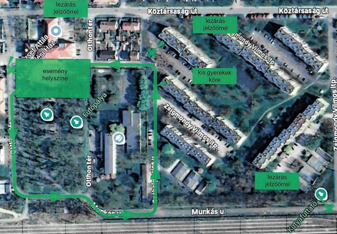 A 17:00 és 17:30 között lezajló Mini Futam ideje alatt a Rendőrség lezárja a mellékelt ábrán látható útszakaszt: Otthon tér – Munkás út – Székely Lajos utca – Szabadság tér