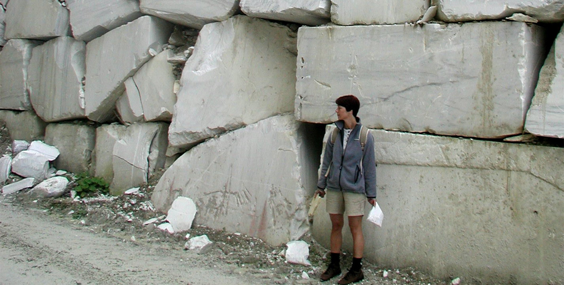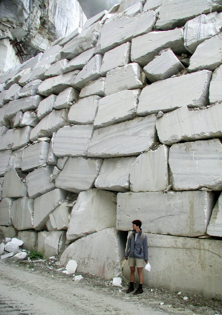 A körülbelül 30 méter magas és legalább 10 méter széles táró bejárata előtt hatalmas kőtömbök sorakoznak. Míg az egyik oldalon szabályosan metszett óriási téglaként rendezetten egymásra rakva, a másikon formátlan tömbök formájában, rendezetlen halomban. Vélhetően ez utóbbi a termelés során keletkező törmelék, selejt gyűjtőhelye, amiben azért – valljuk meg őszintén – „benne vannak” kisebb szobrok, kerti- vagy szobadíszek. Csak éppenséggel le kell fejteni róluk a „fölösleget”.