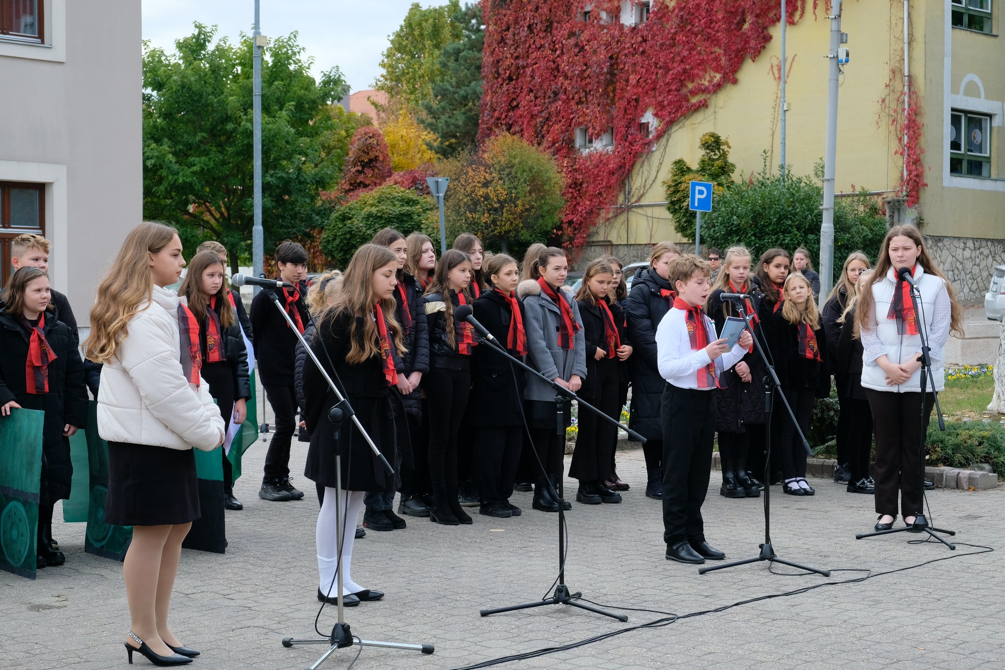 Az ünnepség a Himnusz közös eléneklésével vette kezdetét, majd a Dorogi Magyar-Angol Két Tanítási Nyelvű és Sportiskolai Általános Iskola diákjai mutatták be „Szabadnak születtél” című műsorukat. A meghitt, mégis erőt sugárzó előadás méltó módon tisztelgett az 1956-os hősök és áldozatok emléke előtt. A diákokat Gubík Anikó készítette fel, a díszletet Széher Edit tervezte, a kórust pedig K. Fódi Krisztina vezényelte.