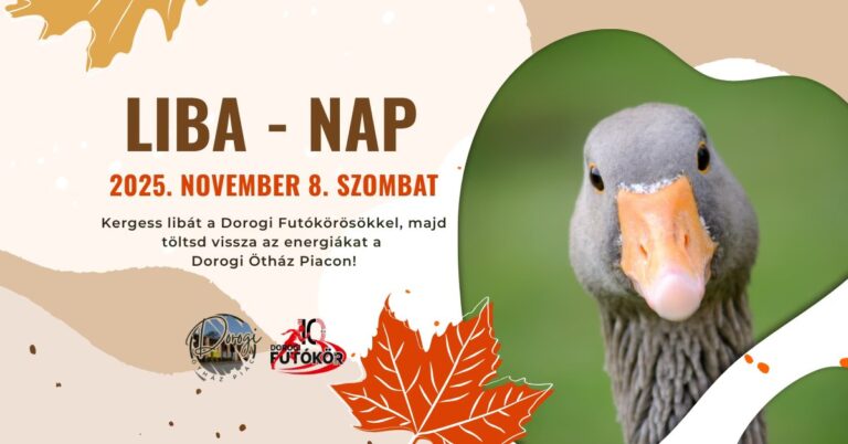 Dorogon ismét megrendezik a már hagyománnyá vált Márton-napi Libakergető futást, amely ezúttal a Dorogi Ötház Piac Liba-napi programjainak részeként várja a családokat november 8-án, szombaton délelőtt. A Dorogi Futókör szervezésében megvalósuló esemény nemcsak a mozgás öröméről, hanem a közösségi élményről és a Márton-napi hagyományok megőrzéséről is szól.