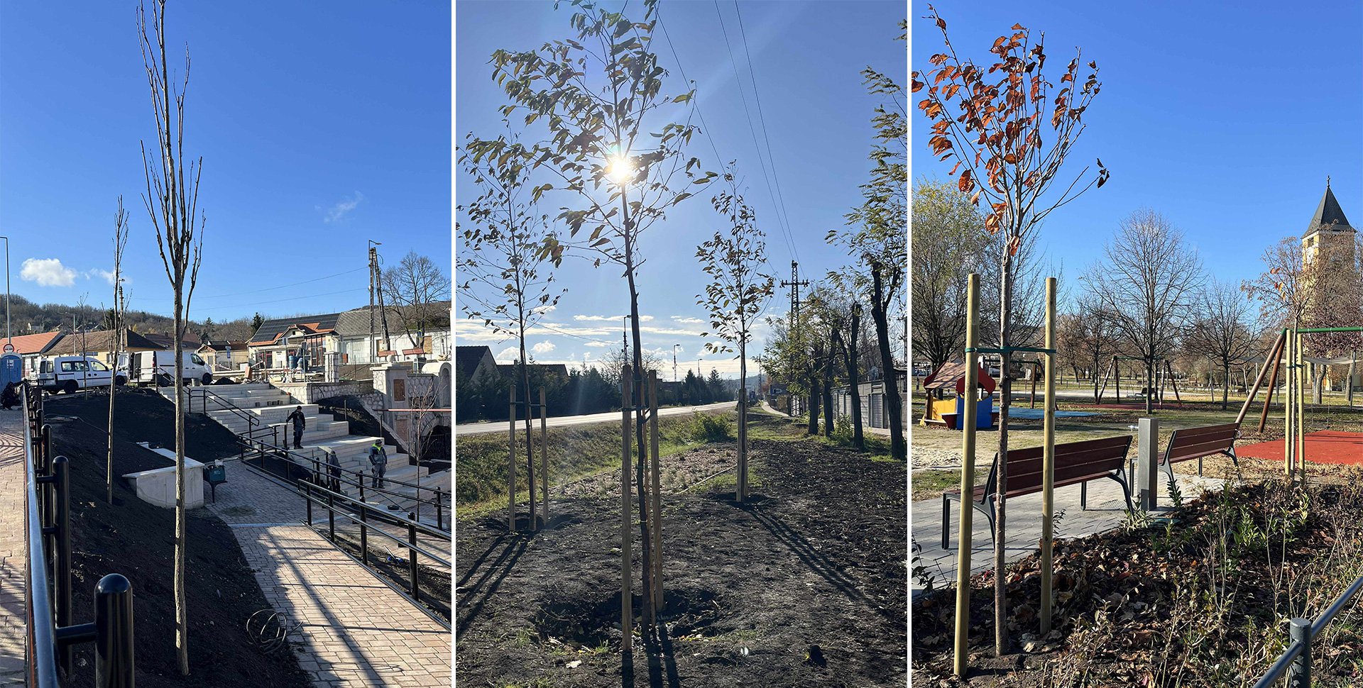 A munkálatok részeként korábban sor került több, biológiailag vagy esztétikailag értéktelen, beteg fa kivágására is, ezek pótlása és minőségi megújítása most megkezdődött. A fák egy részét az elmúlt hetekben már elültették, a munka pedig folytatódik, így a közeljövőben Dorog környezete több mint kétszázhatvan új fával – információink szerint többek között kislevelű hárssal, virágos kőrissel és mamutfenyővel – gazdagodik.