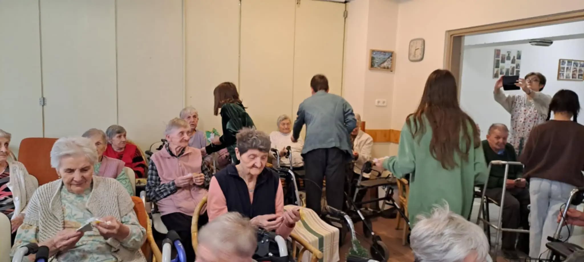 A meghatott nénik és bácsik könnyes szemmel köszönték meg a fiatalok kedvességét és figyelmességét.