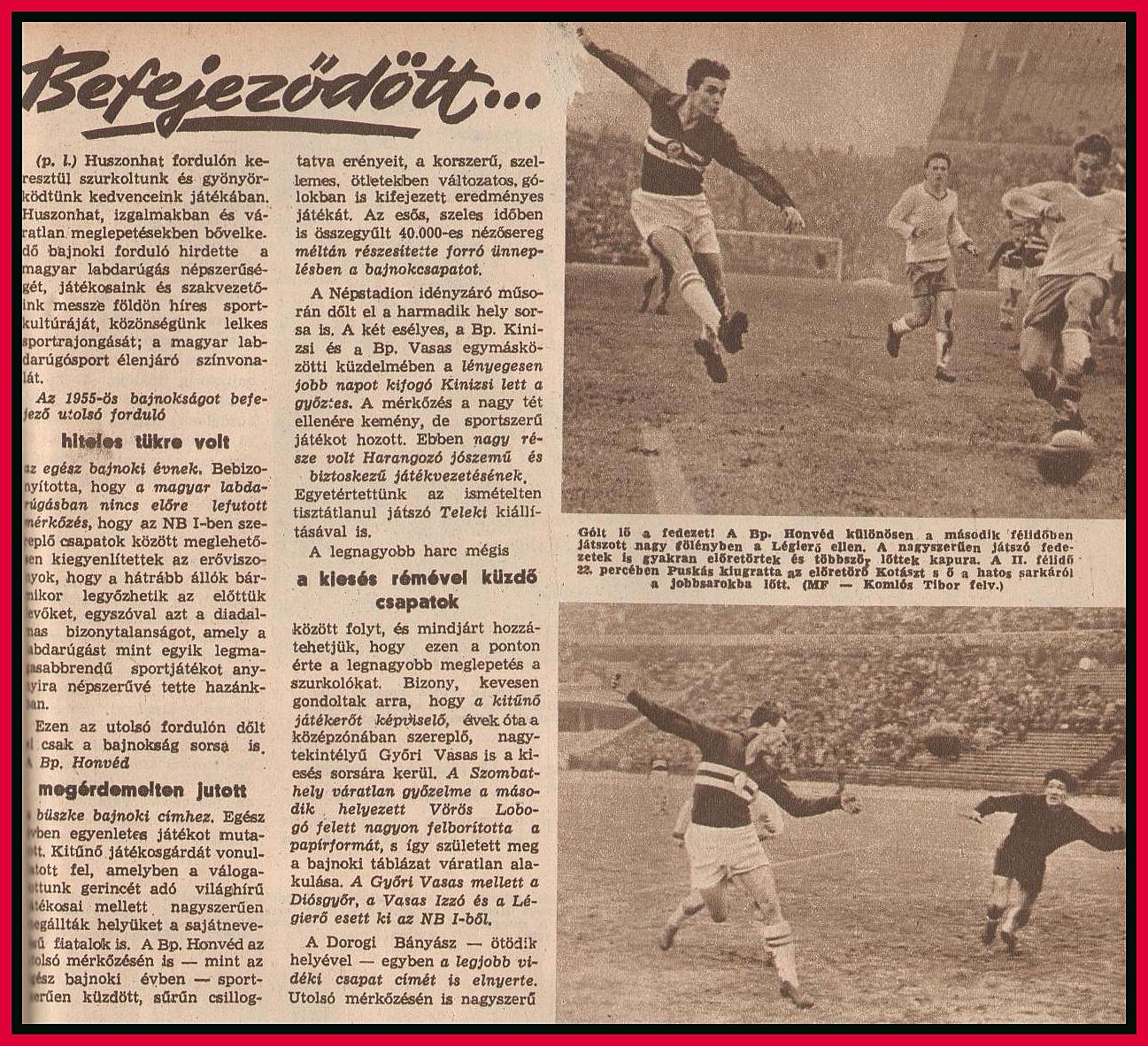 A Népsport összefoglalójának egy részlete a zárófordulót követően (forrás: Tempó Fradi! – 1955. december 11. – www.tempofradi.hu)