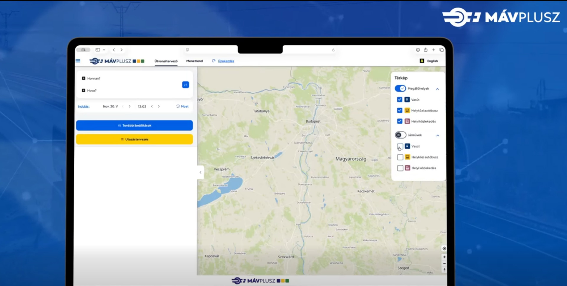 Az új rendszer, a MÁV+ célja, hogy az utazók egyetlen oldalon érjék el a számukra fontos adatokat – legyen szó vonatról, autóbuszról, HÉV-ről vagy tramtrainről. A felület egyik legnagyobb előnye az interaktív térkép, amelyen valós időben követhető a kiválasztott járat pontos helyzete, útvonala, sebessége és várható érkezése.