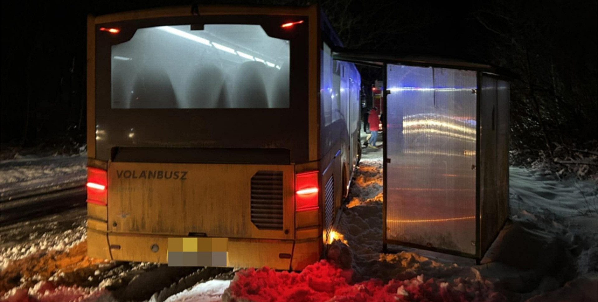 A buszmegállóból kiállva megcsúszott és fennakadt egy menetrend szerinti autóbusz szerda este Kömlődön, a 8135-ös úton. A jármű vezetője megpróbált önerőből kiszabadulni, de közben nekicsúszott a megálló épületének, melynek következtében a jobb hátsó ablaka kitört. A buszon a sofőr és hat utas tartózkodott, személyi sérülés nem történt. Az oroszlányi önkormányzati és a környei, valamint a kecskédi önkéntes tűzoltók a buszt teljes útzár mellett kihúzták a megállóból, így önerőből tudta folytatni az útját. Az utasokat a mentés közben a rendőrség kisbusszal elszállította a helyszínről.