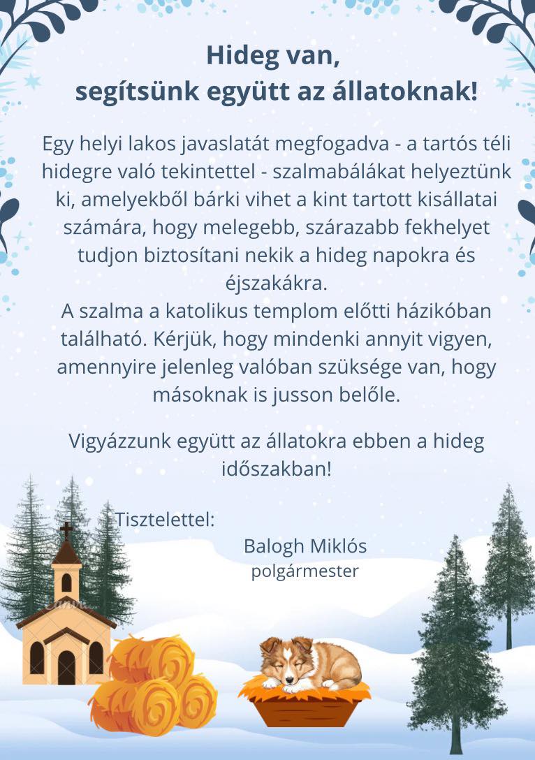 A tartós téli hideg nemcsak az embereket, hanem az udvaron, kertben tartott állatokat is komoly kihívás elé állítja. Nagysáp Község Önkormányzata most egy egyszerű, mégis rendkívül hasznos kezdeményezéssel hívta fel a figyelmet az állatvédelem fontosságára, amely jó példaként szolgálhat más települések számára is.