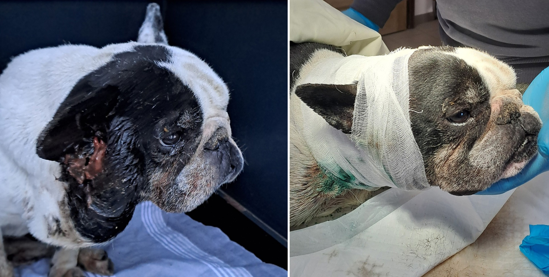 Az alapítvány gyors összefogásának köszönhetően Vincent azonnal állatorvosi ellátásban részesült. A beavatkozás után megkezdődött a napi rendszerességű, fájdalmas sebkezelés, amelyet a kutyus rendkívüli türelemmel visel. Napokig tovább terjedt a fertőzés, egyre nagyobb bőrfelületek haltak el, amelyeket el kellett távolítani, ám az elmúlt időszakban végre biztató jelek mutatkoznak: elindult a gyógyulás.