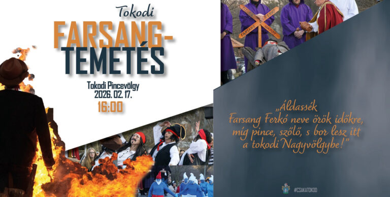 Idén is megrendezik Tokodon az egyik legnépszerűbb közösségi eseményt: a hagyományos farsangtemetést. A Tokod Nagyközség Önkormányzata szeretettel hívja az érdeklődőket 2026. február 17-én, húshagyó kedden 16 órára a tokodi pincevölgy területére, ahol ismét ál-szomorú, mégis vidám hangulatban búcsúztatják a farsangot és a telet.