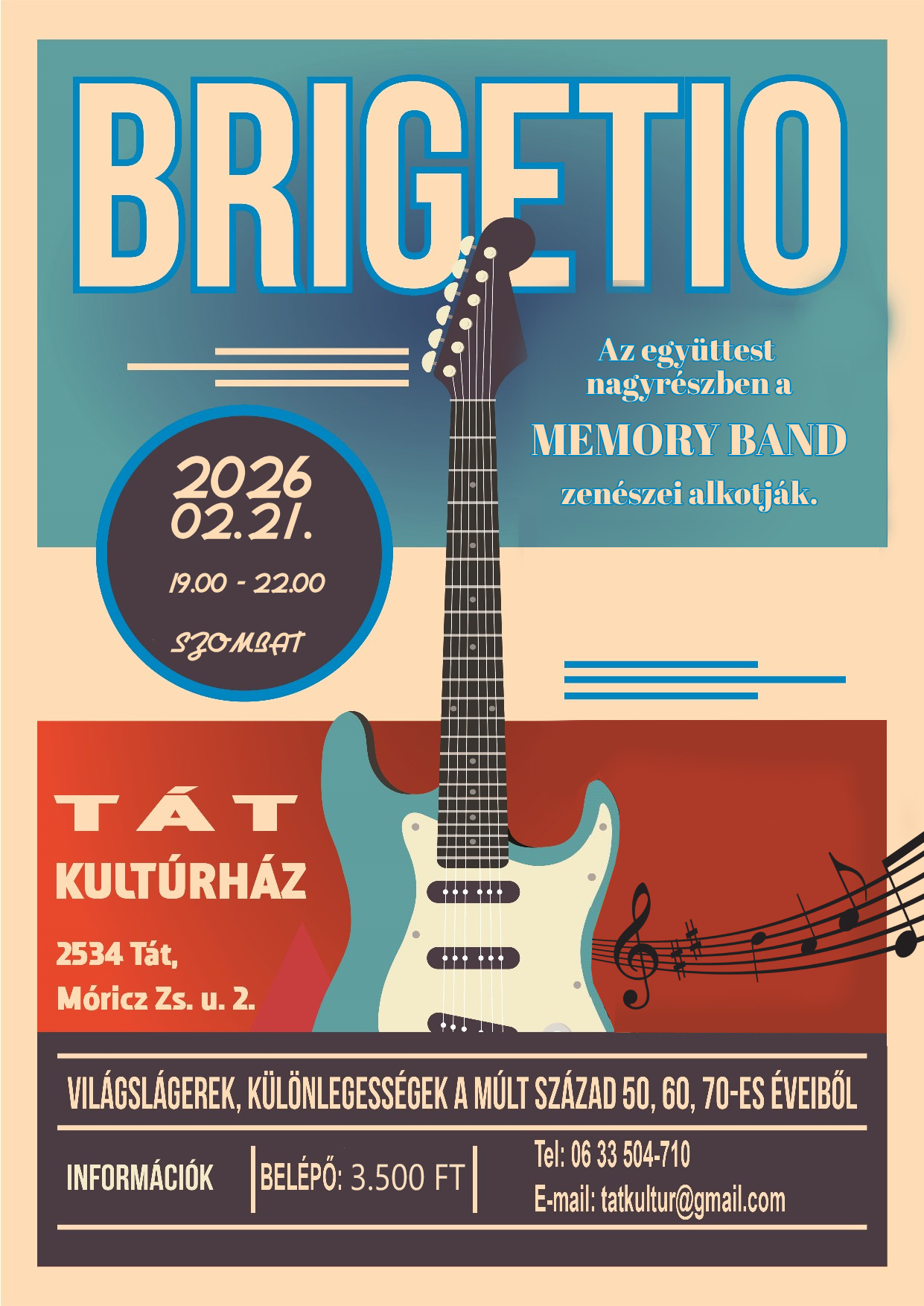 A Brigetio zenekar tagjai nagyrészt a MEMORY BAND zenészei közül kerülnek ki, így a közönség tapasztalt, ismert előadókkal találkozhat a színpadon.