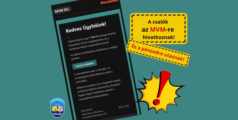 A tájékoztatás szerint az elkövetők telefonon, e-mailben vagy SMS-ben keresik meg az embereket, és az MVM-re hivatkozva tartozásról, kikapcsolásról vagy sürgős fizetési kötelezettségről beszélnek. A céljuk egyértelmű: megszerezni az áldozatok pénzét vagy banki adatait.