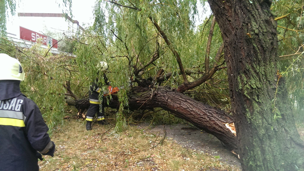 Egy 10 méteres platánfa dőlt az útra Kisbéren, mindkét forgalmi sávot elzárva. A kisbéri hivatásos tűzoltók motoros láncfűrésszel szüntették meg a forgalmi akadályt.