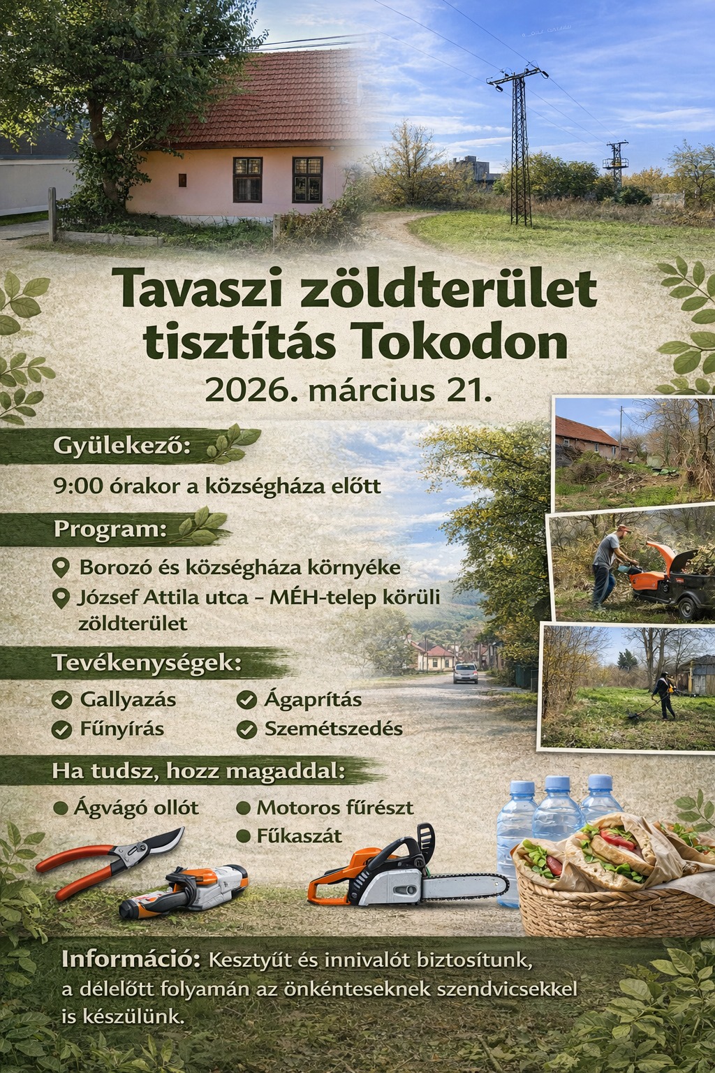 Tokodon közösségi zöldterület-tisztítást szerveznek 2026. március 21-én, szombaton délelőtt. A szervezők arra kérik a lakosokat és minden érdeklődőt, hogy csatlakozzanak a néhány órás önkéntes akcióhoz, amelynek célja a település közterületeinek megtisztítása és szebbé tétele.