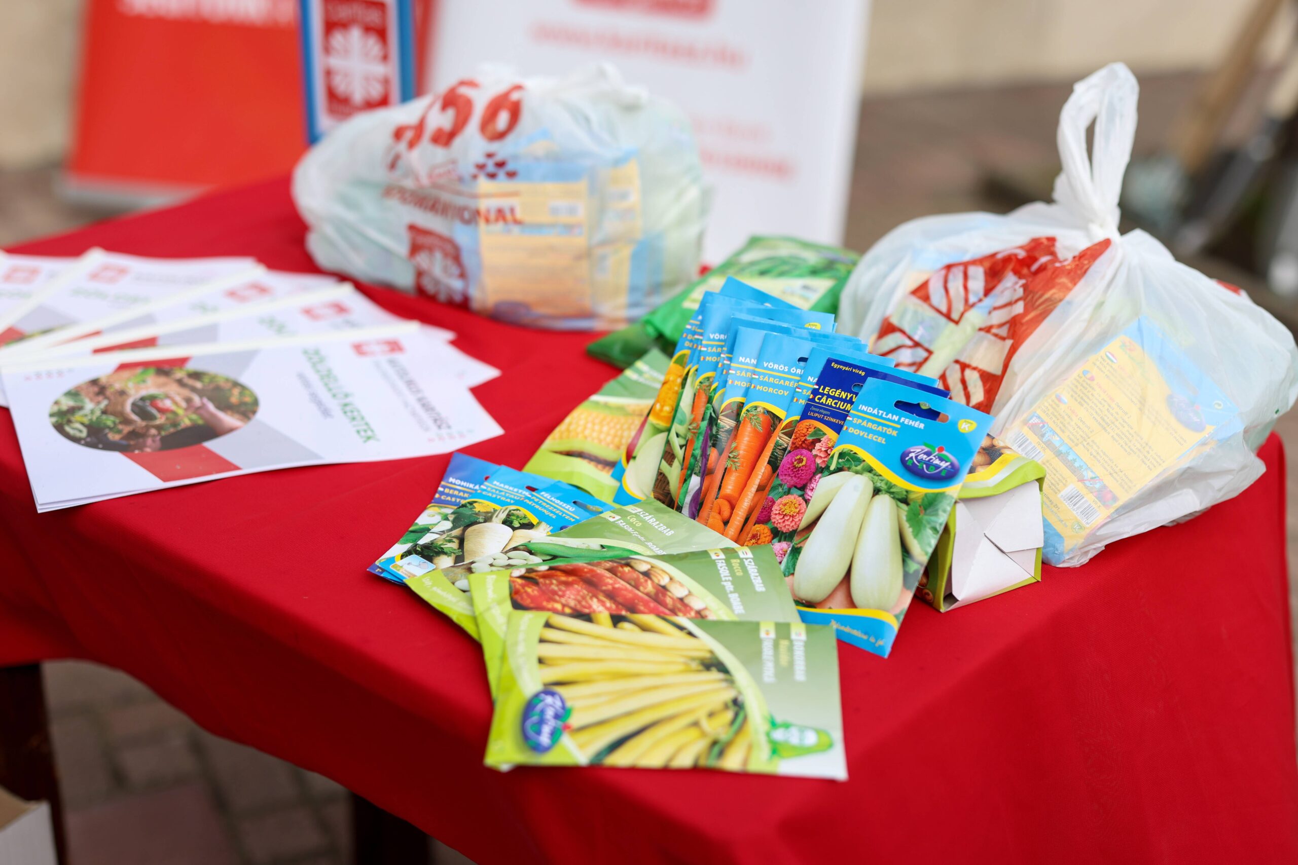 A kiosztott csomagokban helyet kapott többek között paradicsom, sárgarépa, zöldborsó, dughagyma, étkezési szárazbab, uborka, cékla, karalábé, hónapos retek, sütőtök, kétféle zöldbab, spenót, fejessaláta is, emellett a keretek díszítésére virágmagokat is kapnak a családok.